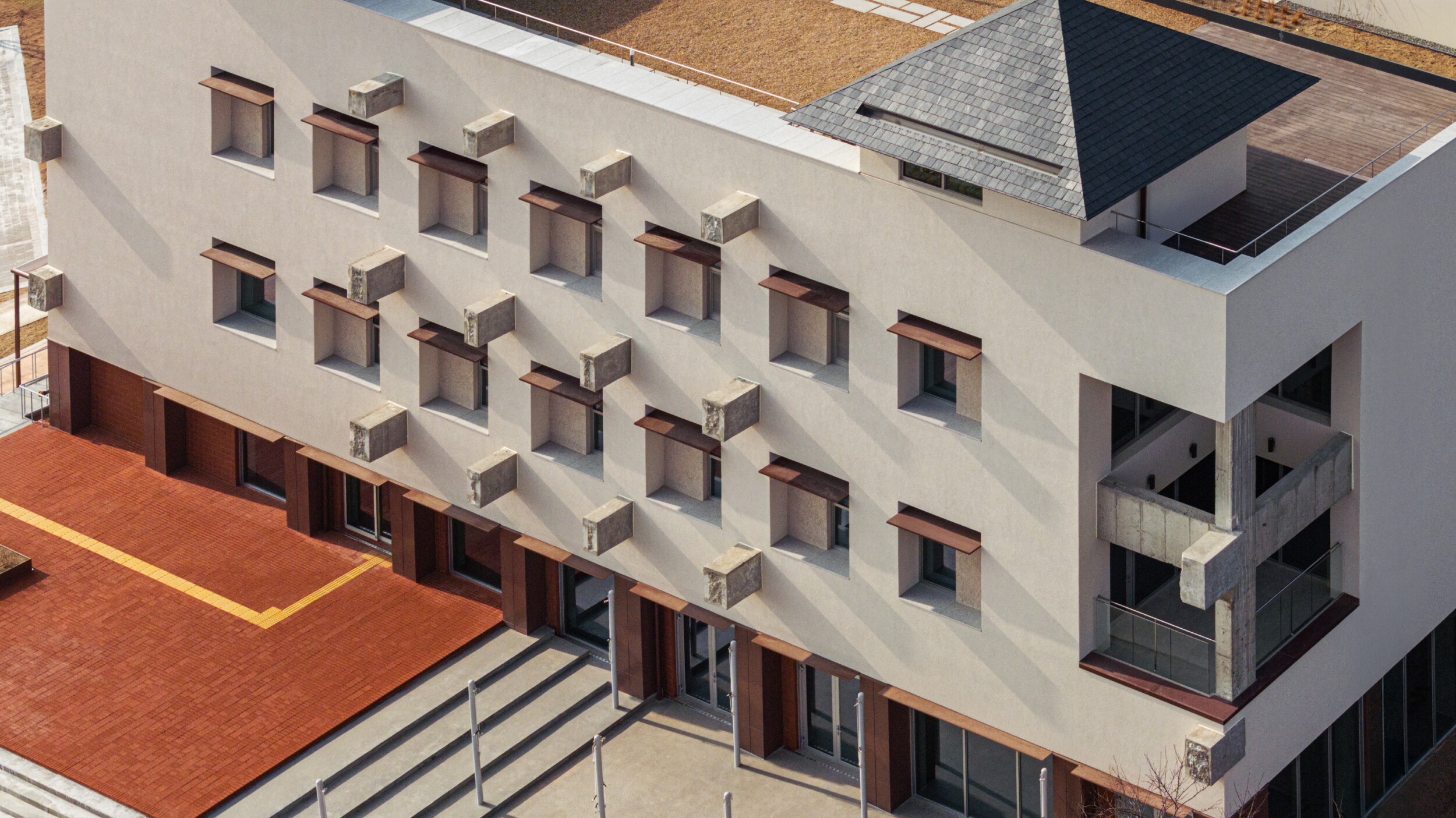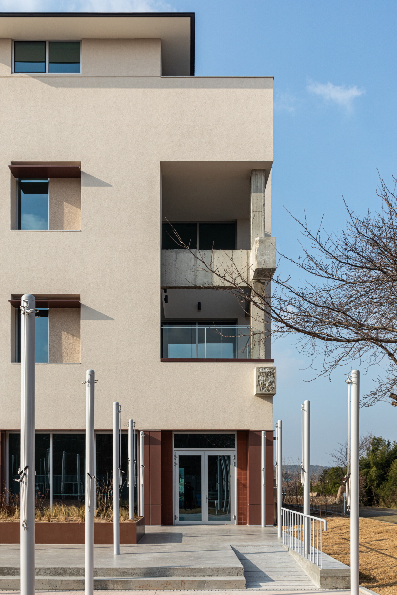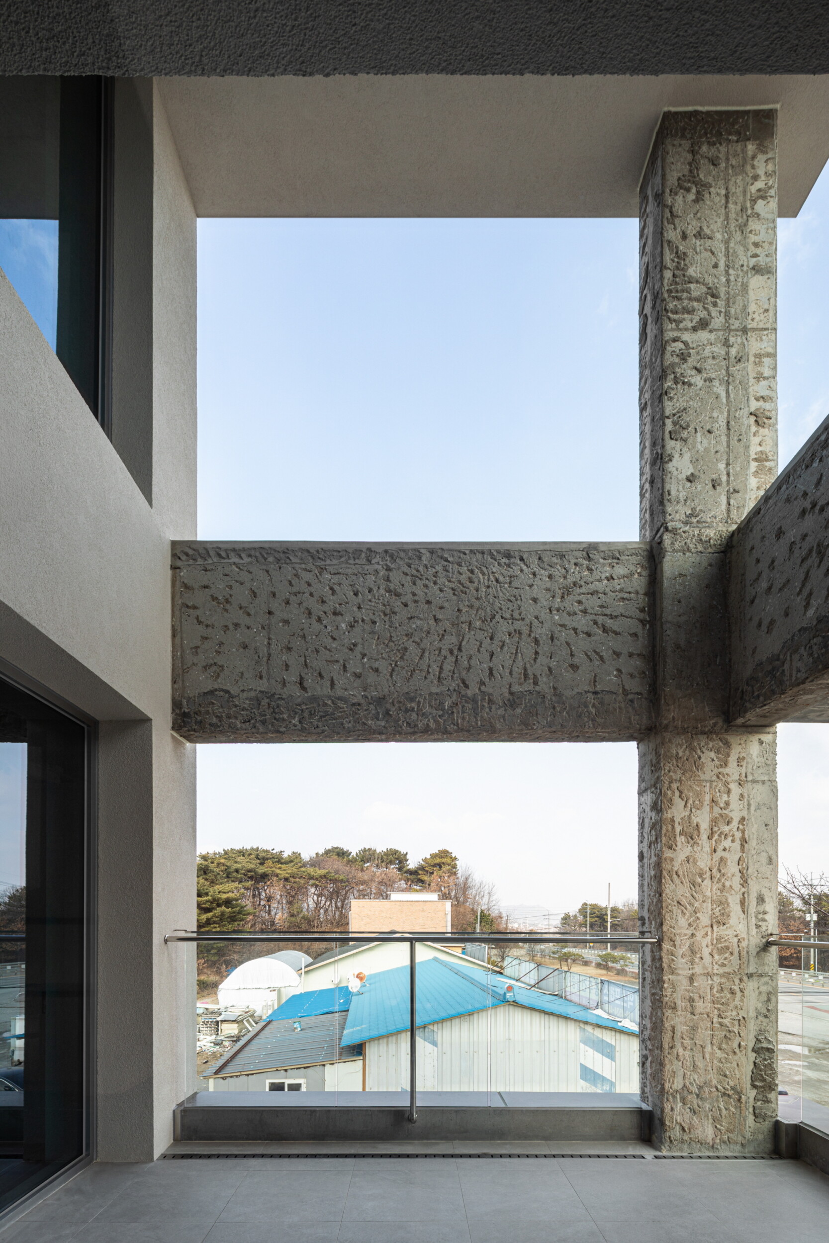 이 프로젝트를 관통하는 또 하나의 태도는 최소한의 변형이다. 구조 계획은 기존 구조체를 존중하면서 필요한 보강과 엘리베이터 코어 신설을 수행하고, 에너지 계획은 외단열 시스템, 차양, 자연환기, 태양광 패널을 통해 성능을 보완한다. 인테리어에서도 기존 바닥 단차와 타일, 슬라브의 조건을 가능한 한 활용하며, 이를 가구와 동선 계획의 일부로 전환한다. 즉 건축적 완성도는 비싼 재료나 과장된 디테일에서 나오지 않는다. 오히려 이미 주어진 구조, 예산, 레벨 차, 외부공간의 조건을 세밀하게 조정하여 새로운 사용의 가능성을 여는 방식에서 형성된다. 이 점에서 이 건물은 신축의 논리보다 리모델링의 윤리에 더 가깝다. 남겨야 할 것을 남기고, 바꿔야 할 곳만 바꾸며, 그 차이를 관계의 장치로 전환한다.