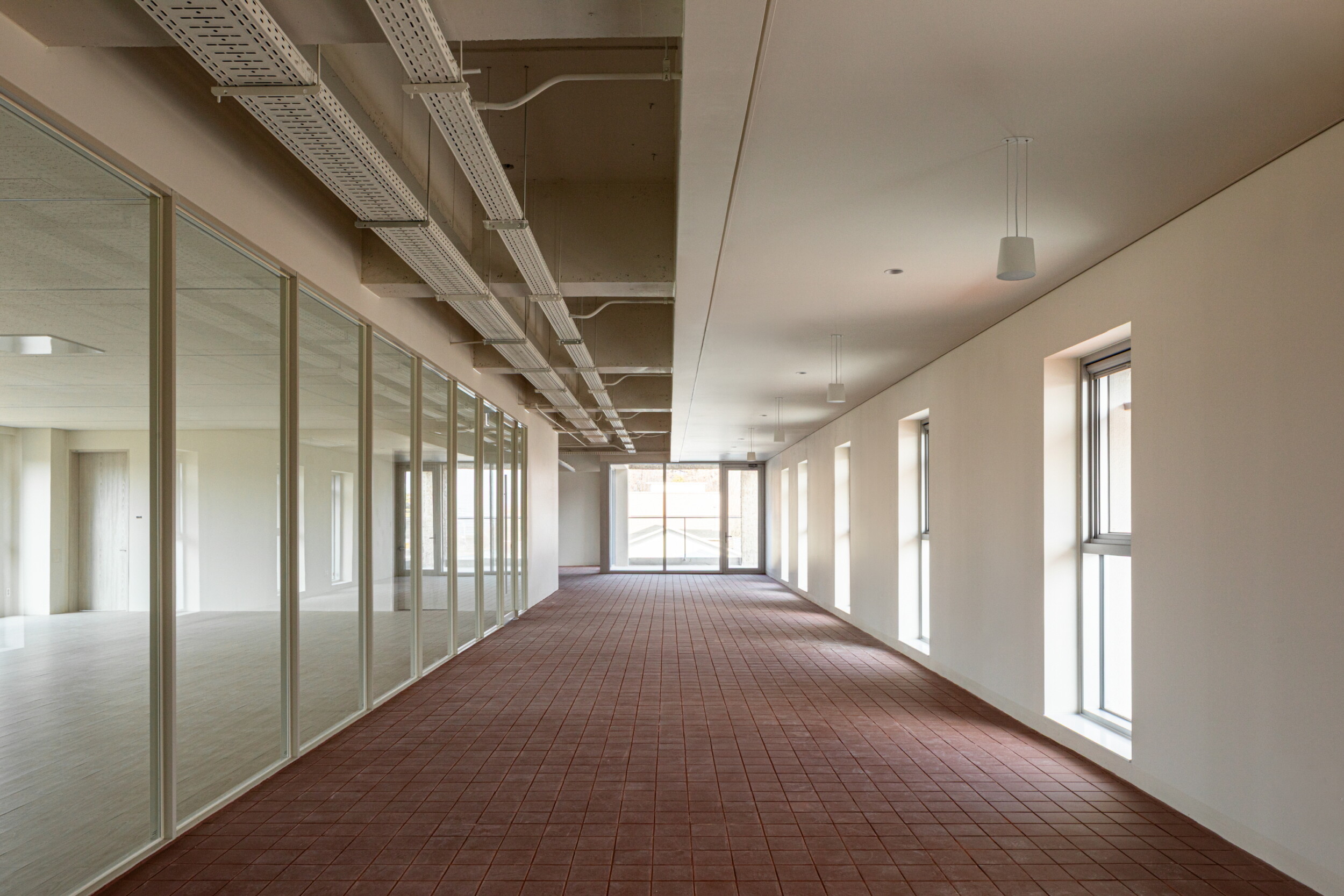 2층과 3층은 보다 분명한 운영 논리를 따른다. 2층에는 다목적실과 공유작업소, 공유라운지가 놓이며, 장터와 저층부의 개방성과 직접 연결되는 활동적 프로그램이 배치된다. 여기에서는 코어와 인프라 영역을 한쪽에 응축하고, 나머지를 라운지 방식의 유연한 공간으로 사용하도록 계획했다. 3층은 회의실, 단체사무실, 통합사무실, 공유스튜디오를 두어 행정과 운영의 층으로 정리된다. 기존 3.5m 모듈을 기본 질서로 삼고, 가변형 벽체와 투명한 재료를 통해 공간의 폐쇄성을 낮춘다. 특히 1,800mm 폭의 복도는 단순한 이동통로가 아니라 회의실과 사무실, 공유스튜디오를 매개하는 열린 공용공간으로 다루어진다. 결국 이 건물의 수직적 구성은 아래에서 위로 갈수록 개방된 마당의 층위에서 운영과 관리의 층위로 이행하는 체계를 만든다. 이는 프로그램의 나열이 아니라 사용 밀도와 공공성의 차이를 입체적으로 조직한 결과이다.